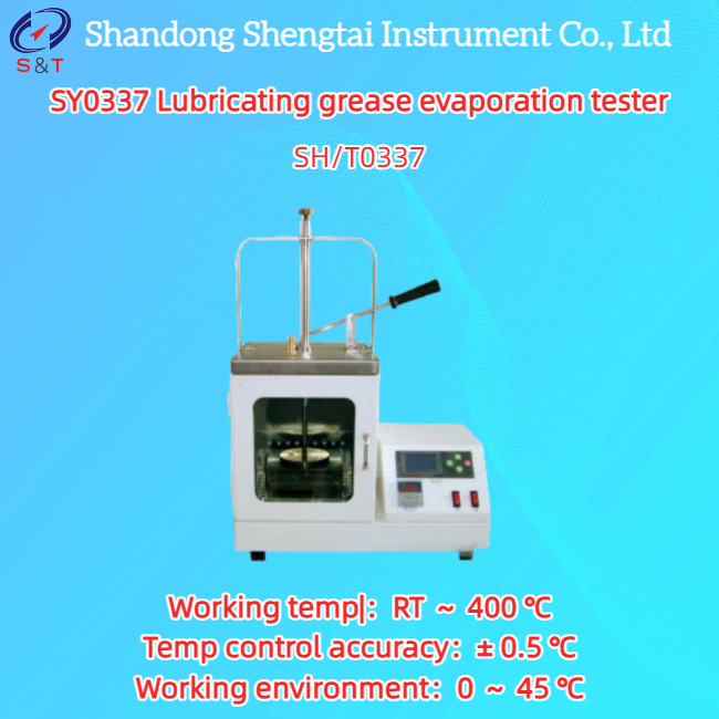 SY0337 潤滑グリース蒸発試験機 本器はSH/T0337規格に基づいて設計・製造されており、潤滑グリースの蒸発量を測定するのに適しています。厚さ1mmの潤滑グリースを充填した蒸発皿を、専門の恒温槽に入れ、指定された温度で1時間(または潤滑グリース製品規格で指定されている時間)保持し、質量損失を測定します。