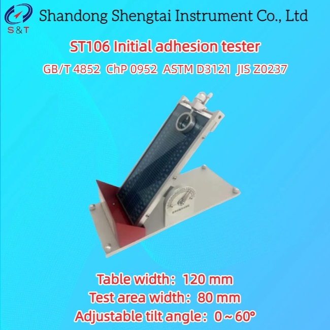 ST106 初期粘着テスト機 (初期粘着テスト機としても知られる) Tape Adherence Testers were designed and manufactured in accordance with the requirements of the new 2025 Chinese Pharmacopoeia 0952 Determination of Adherence Force - Determination of Initial Adherence Force - Method 1装置は斜面のロールボール方法,テープ,ラベル,試験標本の粘着表面と鋼ボールとの間の短い接触により,軽い圧力で鋼玉の初期粘着力を試験するために使用される製品圧力感受性のある粘着テープ,医療パッチ,粘着ラベル,保護フィルム,および初期粘度試験のための他の関連製品に適しています.