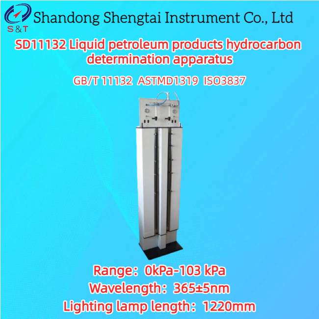 SD11132 液体石油製品炭化水素計は、中華人民共和国標準GB/T 11132-2002「炭化水素液体石油製品測定方法(蛍光指示薬吸着法)」の要件に従って設計および製造されており、GB/T 11132規格に規定されているように、液体石油製品中の主要な炭化水素を蛍光指示薬を使用してシリカゲル吸着カラムに表示し、体積パーセントを計算し、エンジン燃料、航空燃料などの燃料油の品質測定指標として適用されます。