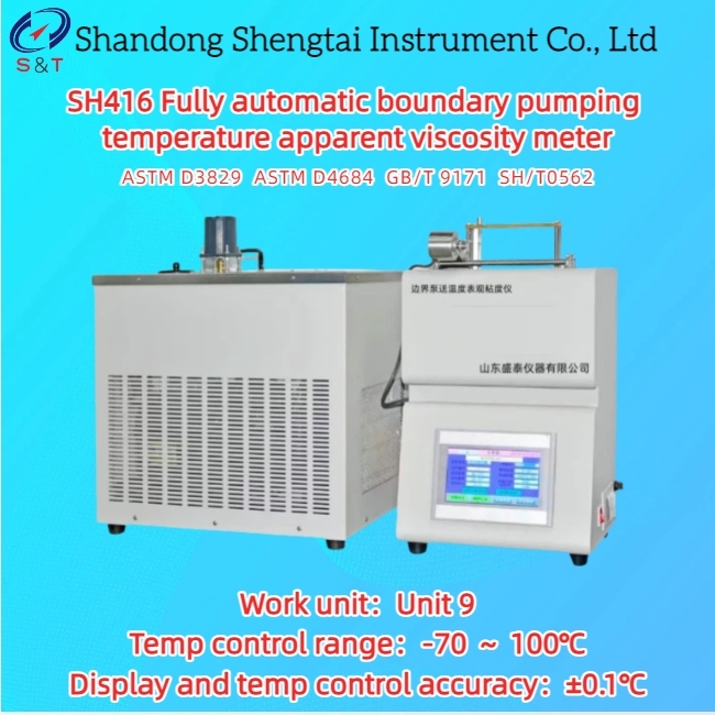 SH416 全自動境界ポンピング見かけ粘度計は、中国国家規格 GB/T 9171-1988 エンジンオイル境界ポンピング温度測定方法の要件、および SH/T0562 に従って設計および製造されており、石油化学業界規格 ASTM D3829 D4684 にも適合しています。境界ポンピング温度、(低温)降伏応力、および自動車エンジンオイルの見かけ粘度を測定するために使用される機器で、-5℃から-40℃までの広い温度制御範囲を持っています。実験プロセス全体は、コンピューターによって自動的に制御されます。
