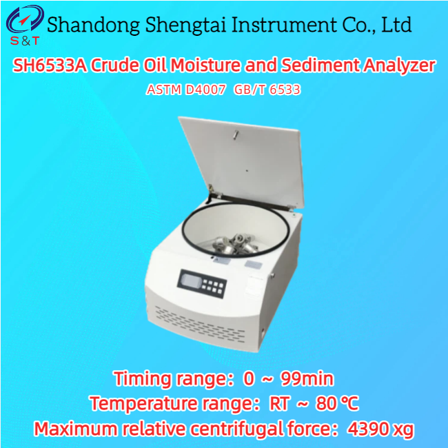 SH6533A原油水分・沈殿物分析装置は、遠心分離機を用いて原油中の水分と沈殿物を測定するために設計されており、GB/T 6533-86規格の要件を満たしています。遠心分離法を用いて原油中の水分と沈殿物を測定します。石油抽出業界や研究機関における水分測定に理想的な分離装置です。