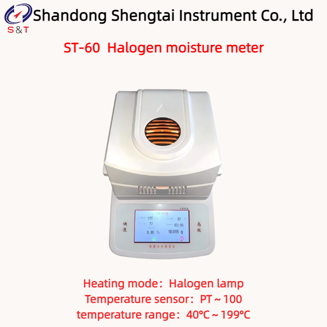 ST-60Moisture Analyzer with halogen heating, intelligent operation. Quickly drying the sample evenly to obtain accurate moisture determination results of ground water clear determination to achieve visual information display, simple, easy to operate instrument. Water samples stored in a variety of pre-determination, makes testing quick and easy. And improved several times compared to mechanical efficiency and accuracy of measurements. Standard interface with computers and other peripherals connected.